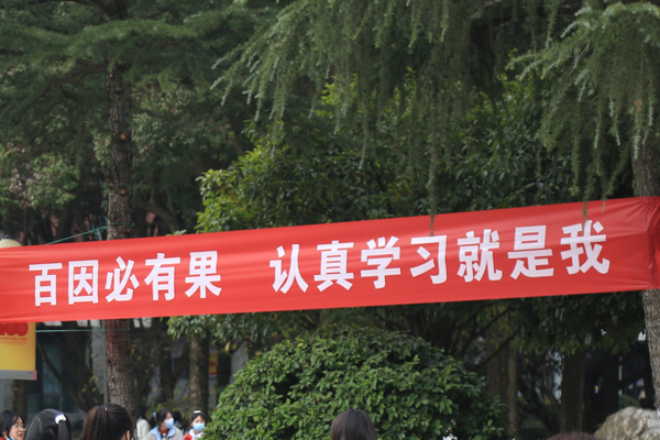 九龍坡職教中心製作新穎別致、腦洞大開的標語迎接學生歸校。