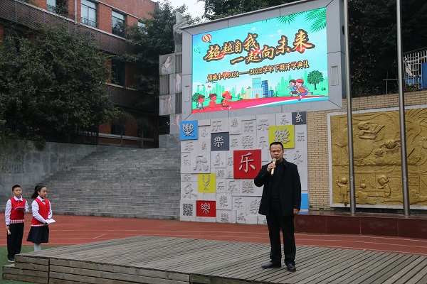 校長陳興明在開學典禮上致辭,圍繞“超越自我,一起向未來”主題給同學們提出了三方面的希望:希望同學們養成良好的生活學習習慣;希望同學們保持良好的身心健康;希望同學們做到品學兼優。號召同學們要像奧運健兒那樣勇於拼搏、挑戰自我,展望未來,實現目標。陳興明還為參加重慶市藝術展演活動(繪畫類)獲獎的老師和學生進行了頒獎。