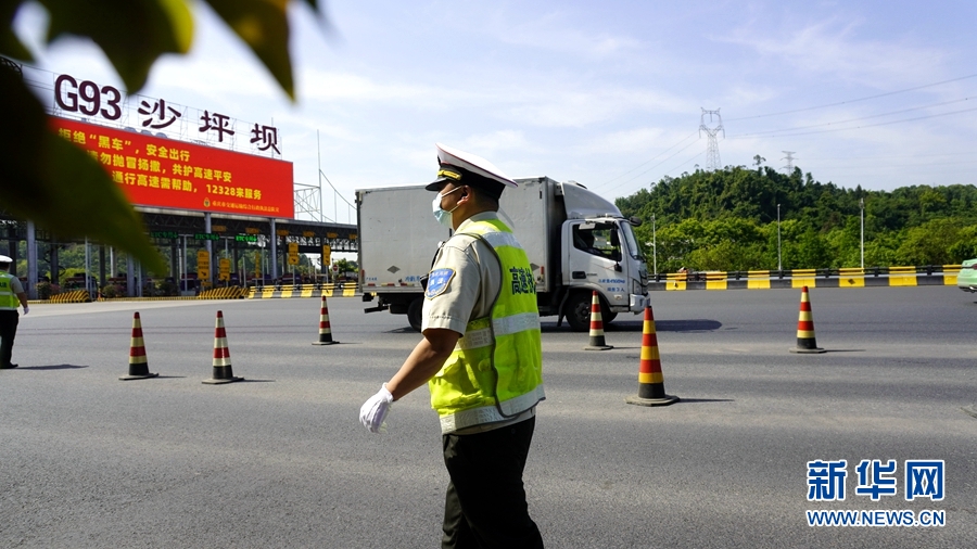 4月21日,在沙坪壩G93收費站,重慶市交通運輸綜合行政執法總隊高速公路第五支隊開展車輛專項整治行動。新華網 江茜 攝