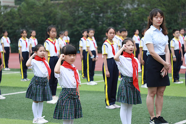 學校大隊輔導員&&,此次入隊儀式課程,旨在讓新隊員們通過貼近生活的愛黨、愛國、愛隊教育,引領他們從小事做起,立下遠大志向。