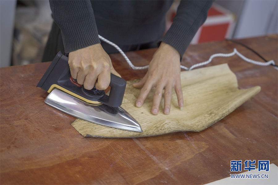 李思飛介紹,筍殼畫製作工序十分複雜,整個製作工序全憑手工完成,筍殼鑲嵌畫採用純天然竹木為原料生産,着色採取熨燙方法為主,作品形色不變,能長期保存。