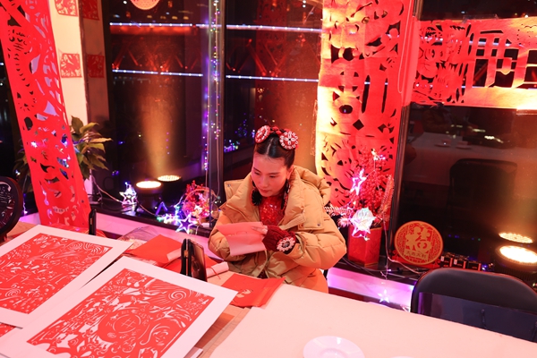 活動現場,雙語主持人與熊貓人偶一道,帶領與會嘉賓和屏幕前的觀眾開啟“尋香之旅”,參與包湯圓、包餃子、燙火鍋等春節民俗活動,感受寫春聯、畫年畫、剪窗花等非遺文化。