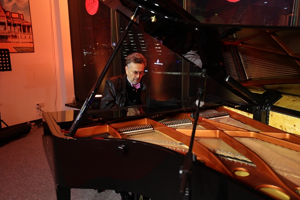 伴隨着優美的小提琴曲《新春樂》和鋼琴曲《最後的行板 左手獨奏曲》,新年的鐘聲敲響,與會嘉賓隔江欣賞除夕夜的無人機、光影秀和焰火表演。