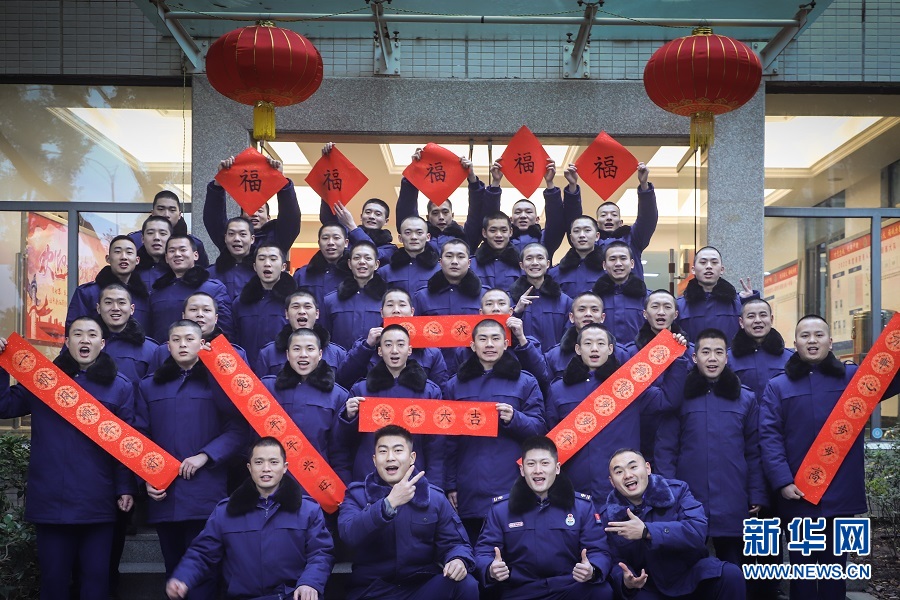 新隊員們合影歡度春節。新華網發(黃華 攝)