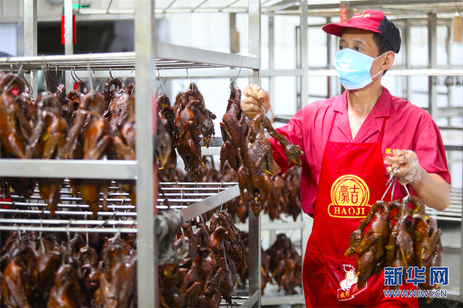 “現在我們每天要生産1萬隻鹵烤鴨製品。”張鴨子公司採購總監、工廠負責人張恒雲説,經過消殺、包裝等工序後,這些鴨子將擺上全國各地百姓餐桌。