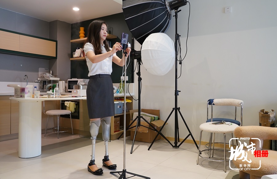 廖智今年37歲,初見時,她正在工作室忙碌。“今天特別忙,這會兒正直播,還有兩個面試,一會兒還有外地的截肢者來做康復訓練,也要提前準備好。”説話時,廖智的臉上總是帶着溫和的笑。新華網 馬天龍 攝 李華曾 陳雨 文