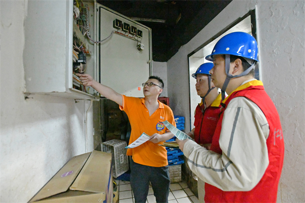 6月14日,國網重慶市北供電公司高壓客戶經理正在為重百超市進行安全用電檢查。(馮勝嵐 攝)