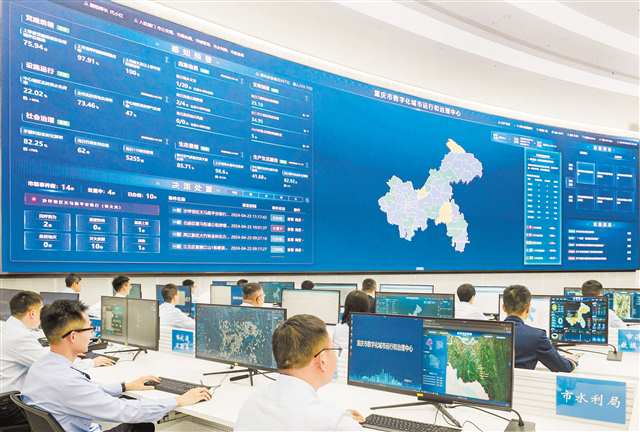 重慶三級數字化城市運行和治理中心大廳,工作人員在後&運維三級治理中心。記者 張錦輝 攝\視覺重慶
