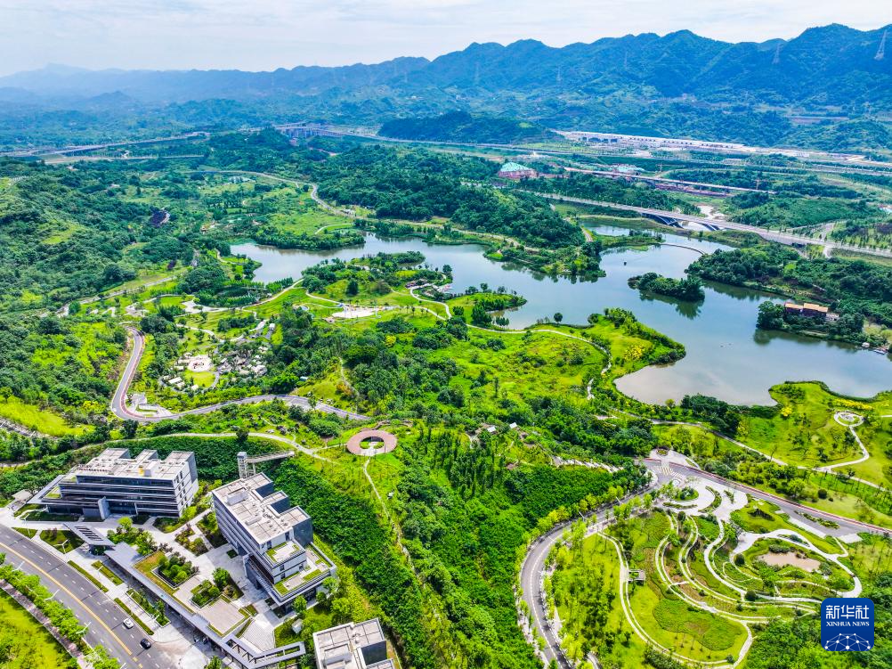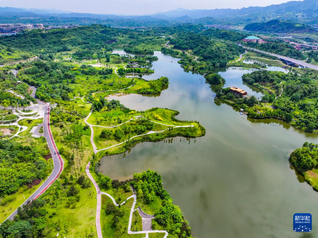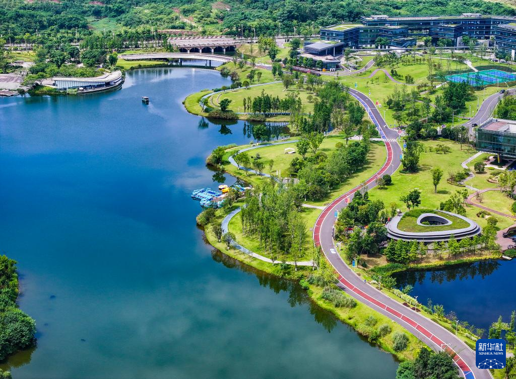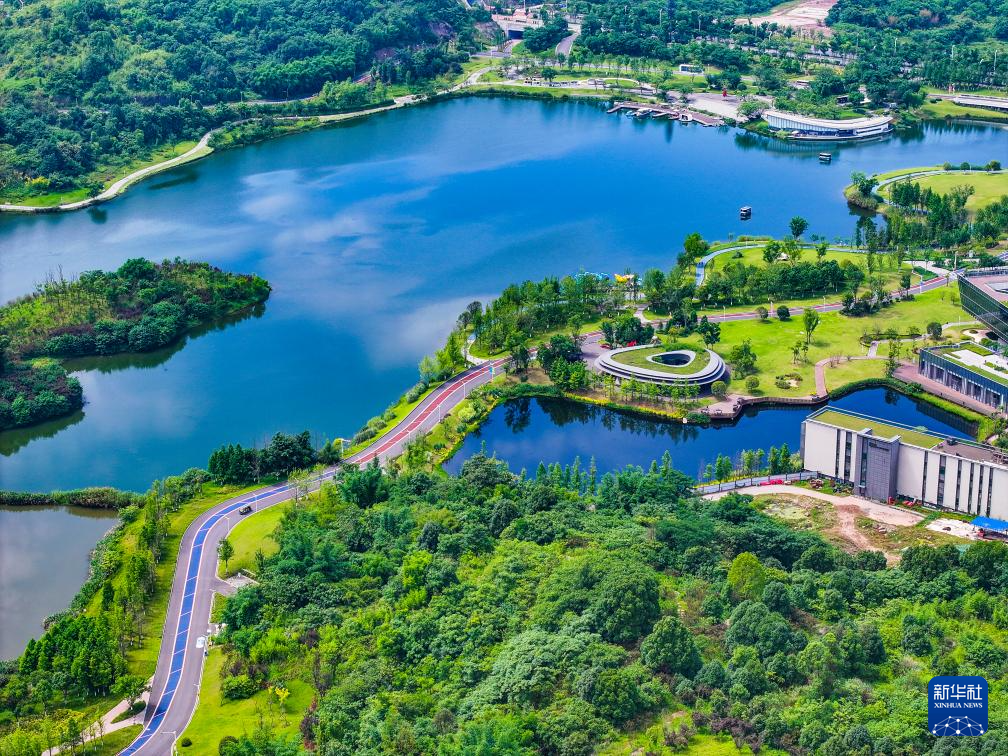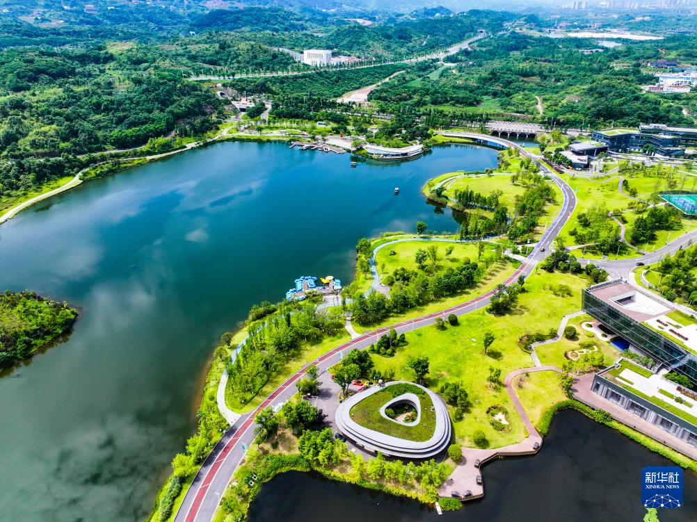 夏日裏,位於重慶兩江協同創新區的明月湖一帶綠意盎然,呈現出一片生機勃勃的景象。