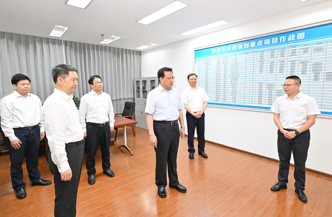 6月13日上午,在市水利局,市委書記袁家軍了解全市水網布局、重點項目建設和水旱災害防禦等工作。記者 蘇思 攝/視覺重慶