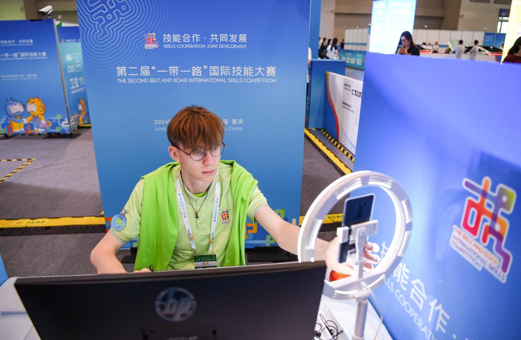 6月24日在重慶國際博覽中心拍攝的第二屆“一帶一路”國際技能大賽現場。