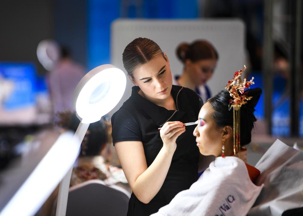 6月24日,第二屆“一帶一路”國際技能大賽美容項目選手在比賽中。