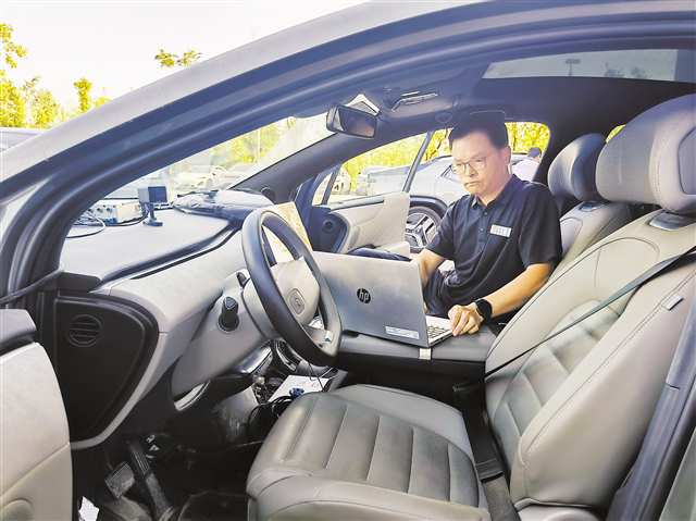 八月十九日,豆劍正在查看汽車測試數據。記者 白麟 攝\視覺重慶