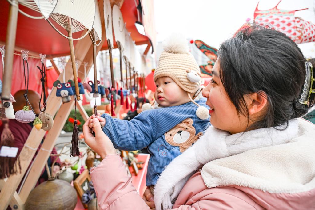 1月16日,市民在2025年川渝新春年貨文化節上欣賞、選購飾品。