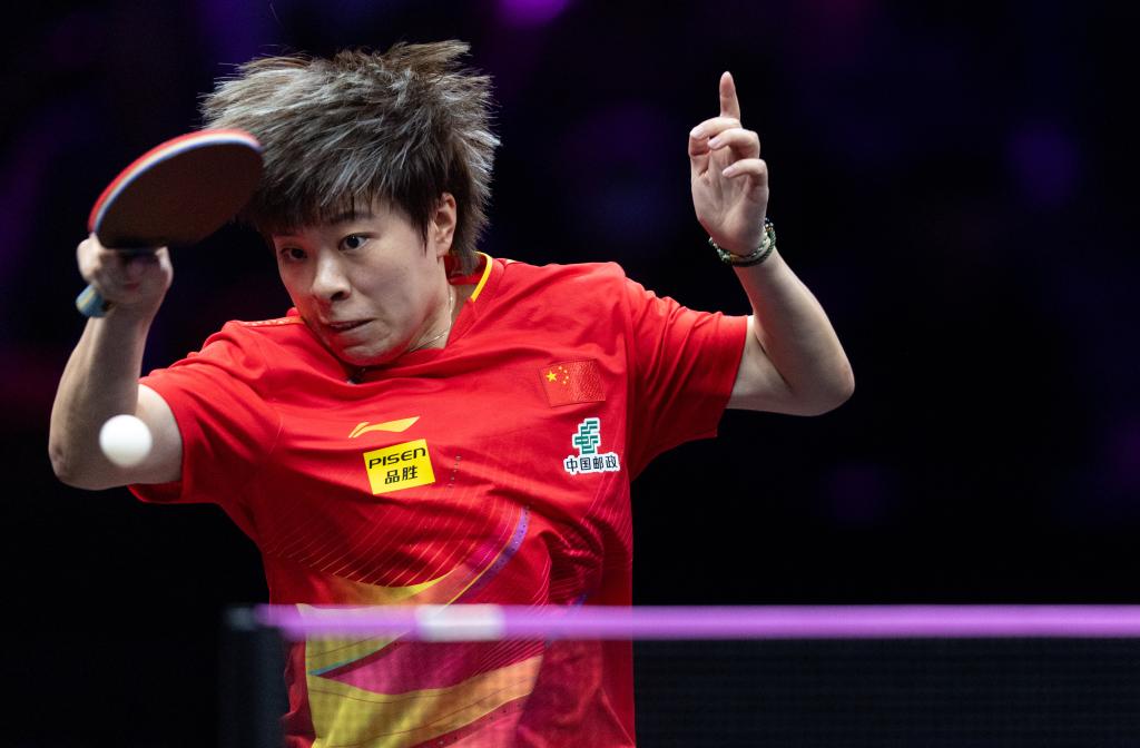 3月12日,王曼昱在比賽中回球。新華社記者 黃偉 攝