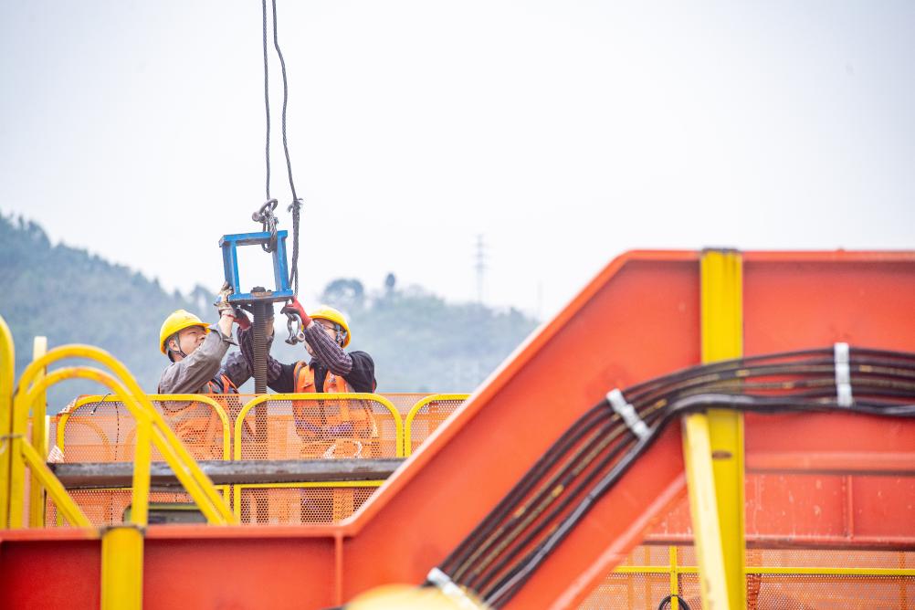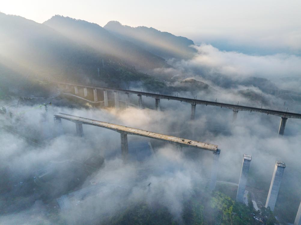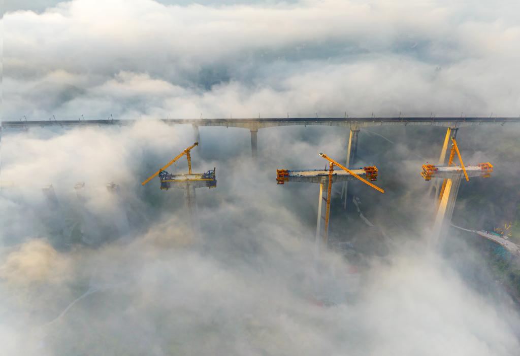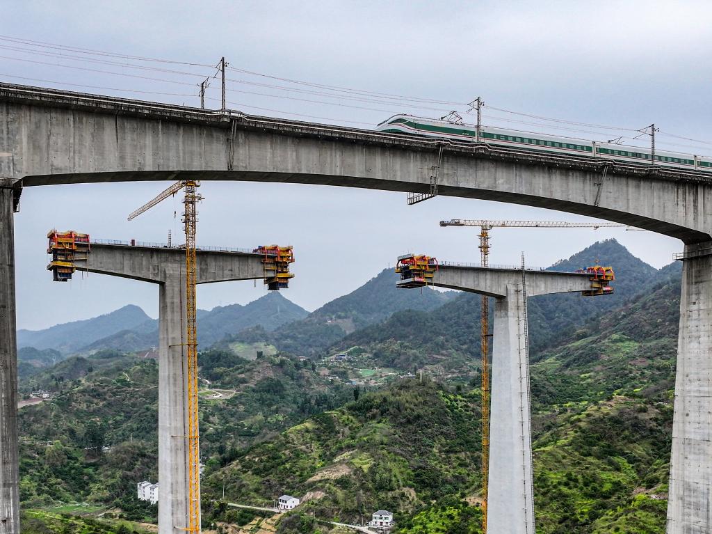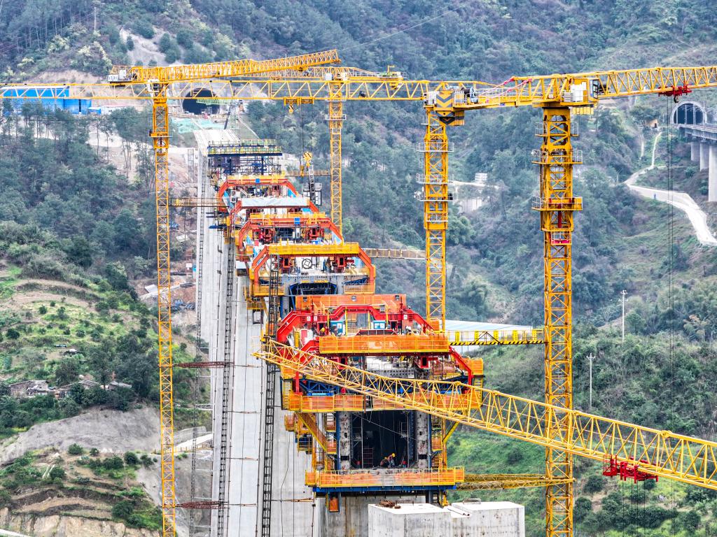 目前,中國鐵建大橋局承建的渝萬高鐵蔡家溝雙線特大橋建設穩步推進。 蔡家溝雙線特大橋位於渝萬高鐵重慶市涪陵區境內,橋長2113.3米,最高主墩為150.5米,為渝萬高鐵全線最高墩。 渝萬高鐵是國家“八縱八橫”高鐵網包(銀)海、京昆通道的組成部分。項目建成通車後,將加強渝東北三峽庫區城鎮群和主城都市區的便捷&&,極大地便利沿線群眾出行,促進沿線經濟社會發展。 新華社記者 唐奕 攝