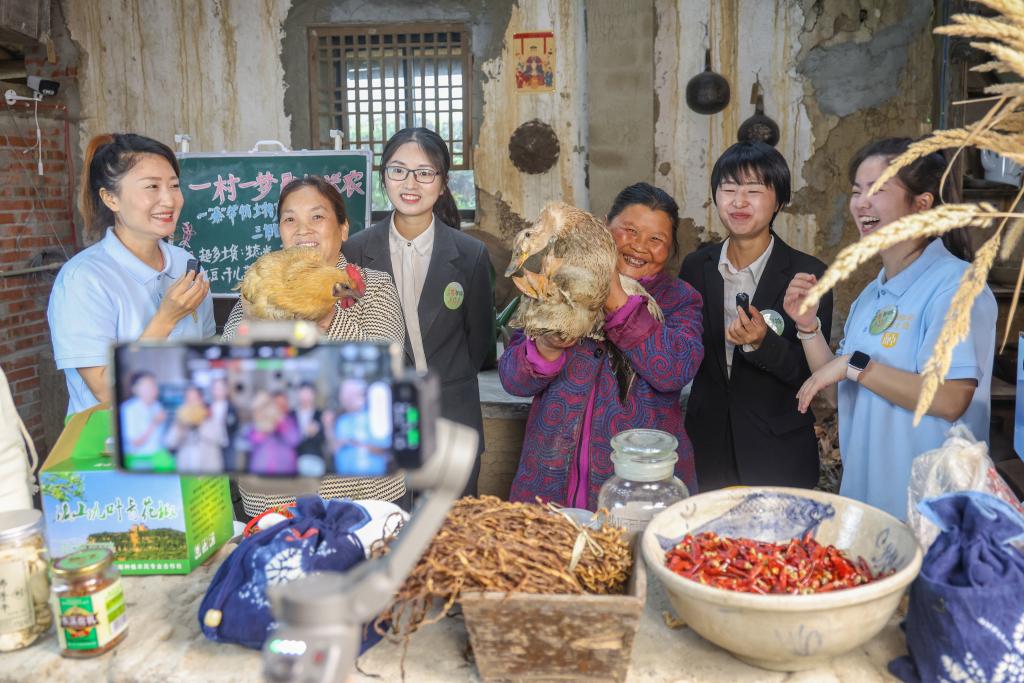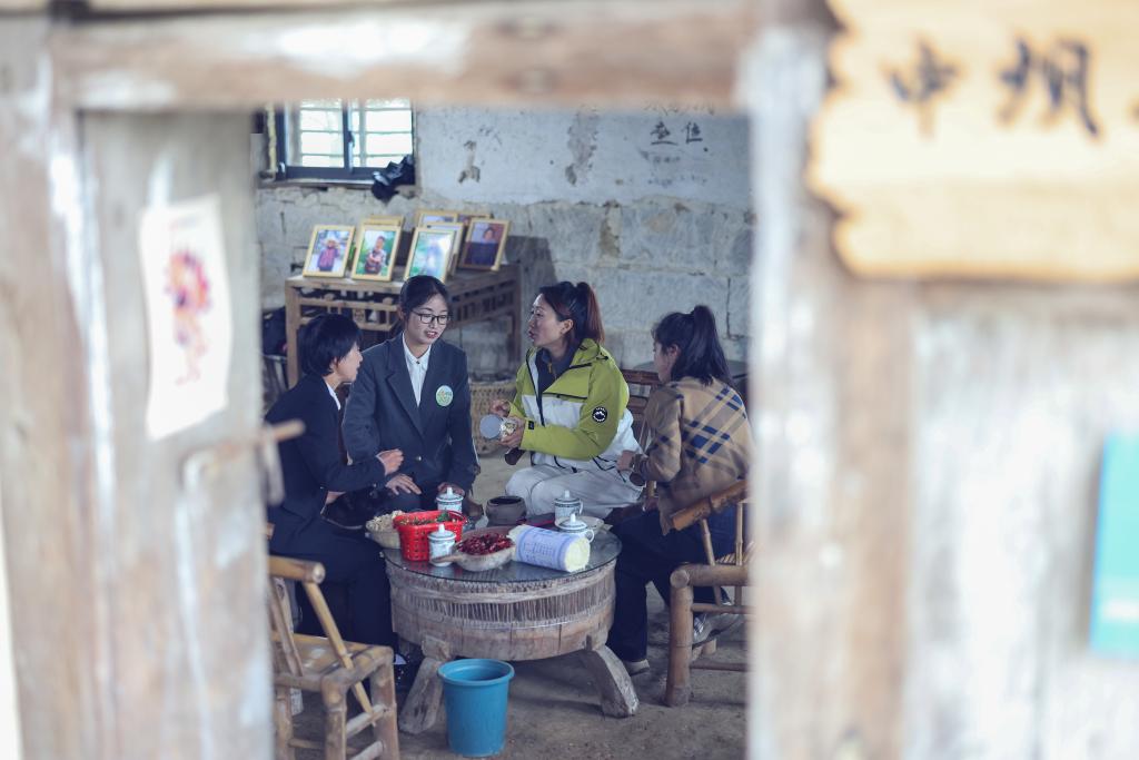 4月24日,在重慶市綦江區三角鎮中壩村,“村書記”主播團一起研討短視頻內容創作腳本和直播間推介土特産的選品。新華社記者 黃偉 攝