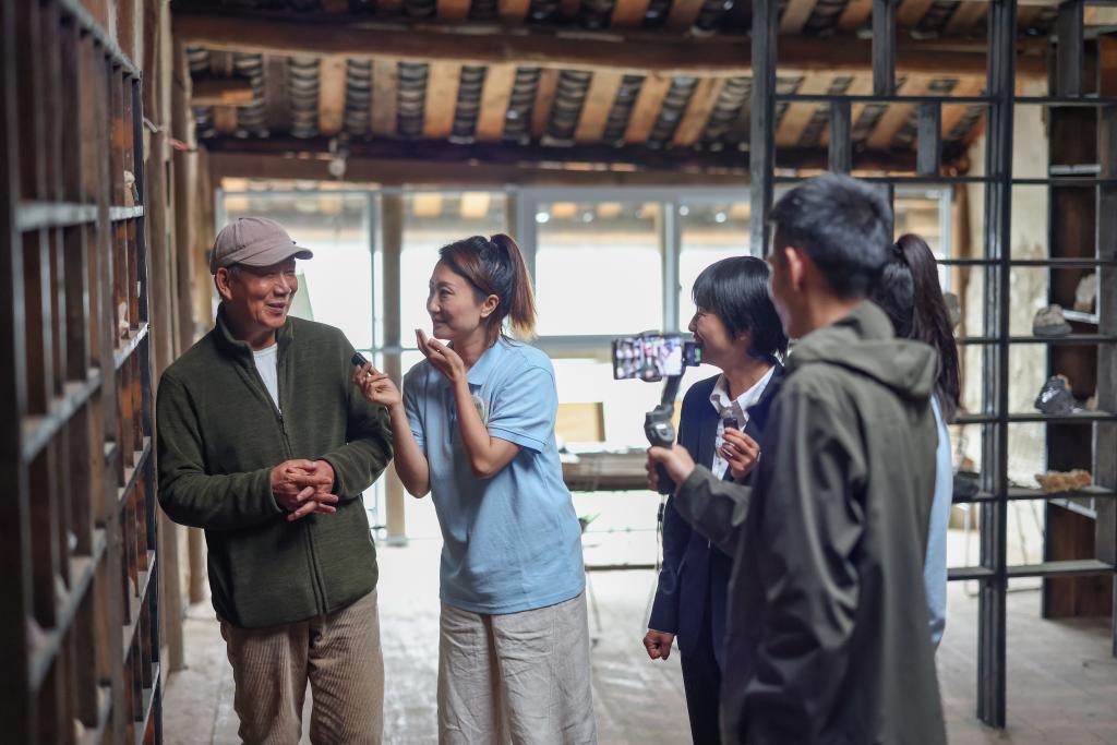 4月24日,在重慶市綦江區三角鎮中壩村,“村書記”主播團在直播間和村民一起介紹鄉村農耕文化。新華社記者 黃偉 攝