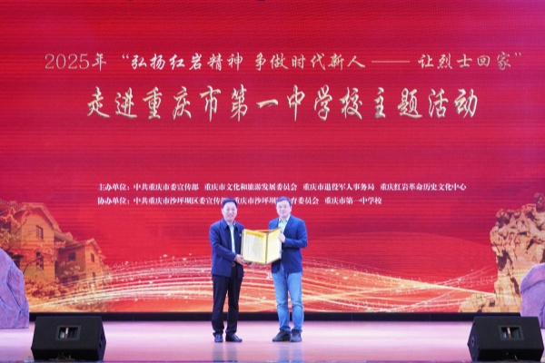 4月26日,2025年“弘揚紅岩精神 爭做時代新人——讓烈士回家”主題活動走進重慶市第一中學校。活動通過故事講解、主題展演、專題展覽等多種形式,將革命烈士的英雄事跡和革命精神發揚光大,讓紅色基因在烈士家鄉以及他們曾經學習、生活、戰鬥過的地方生根發芽、代代傳承。