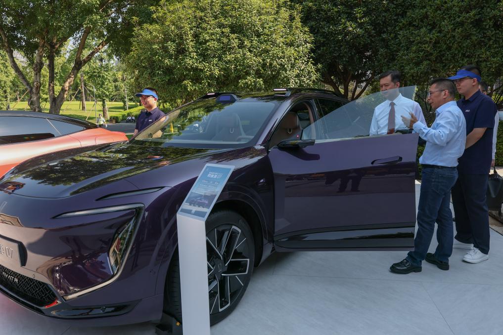 7月29日,參加中國長安汽車集團有限公司成立大會的嘉賓在現場了解阿維塔汽車。