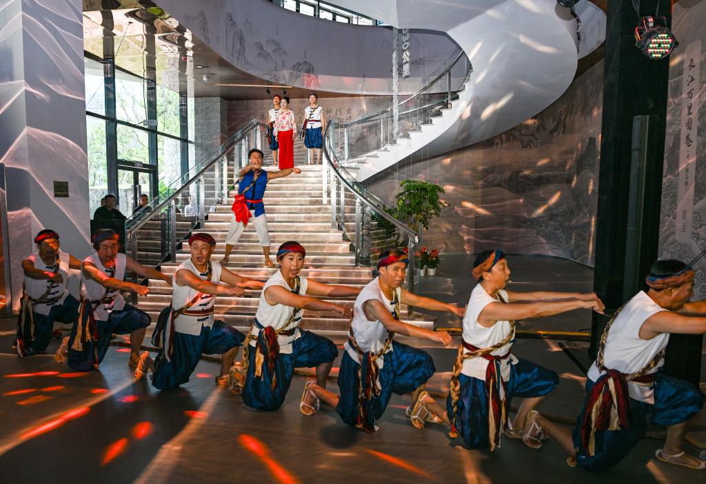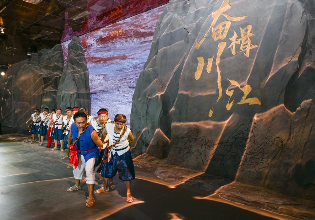 8月15日,演員在川江航運文化園開園儀式上表演歌舞《川江號子》。新華社記者 王全超 攝