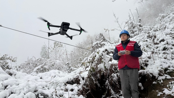 巡線過程中,服務隊逐基檢查桿塔基礎穩固性,觀測導線變化情況,並使用紅外測溫儀對絕緣子、線夾等關鍵部位進行精確測溫。針對地形複雜、人員難以抵達的區段,服務隊利用無人機對線路通道實施全方位、多角度精細化巡查,並對重點覆冰區段建立詳細&賬,為後續防冰抗冰工作提供支持。