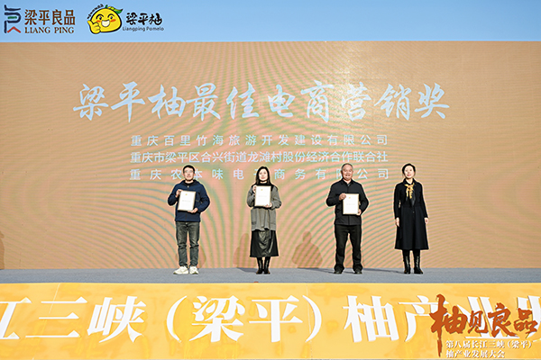 為表彰梁平柚産業發展中深耕不輟的單位與個人,梁平評選出“最佳品質獎”“梁平柚加工産品最佳創新研發獎”“最佳電商營銷獎”,一批扎根一線的“柚産業工匠”與創新先鋒受到表彰。他們中既有數十年如一日扎根田疇的科技工作者,也有用創意與渠道打破地域界限,讓梁平柚香飄萬里的新時代“賣柚郎”,他們的共同努力讓每一顆柚子都成為梁平的金字招牌。