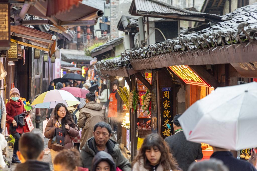 2026年1月1日,游客在重慶磁器口古鎮參觀游覽。
