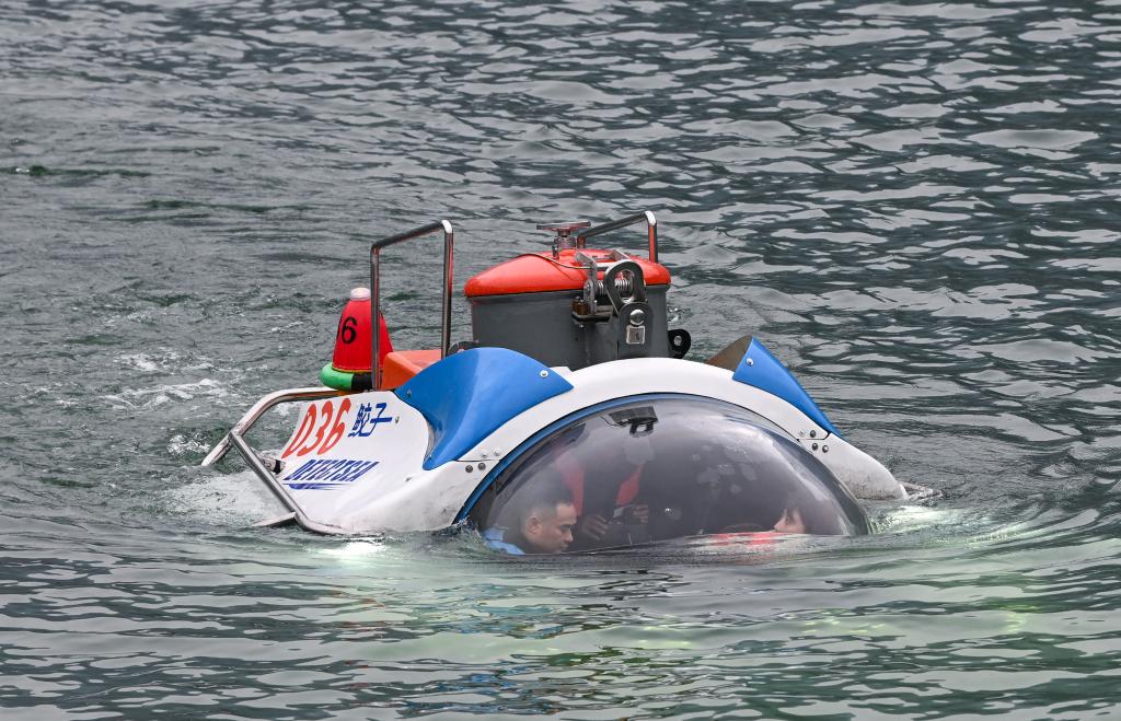 1月21日,“鮫子”號水下載人觀光潛水器在重慶巫山雙龍湖進行交付前測試。