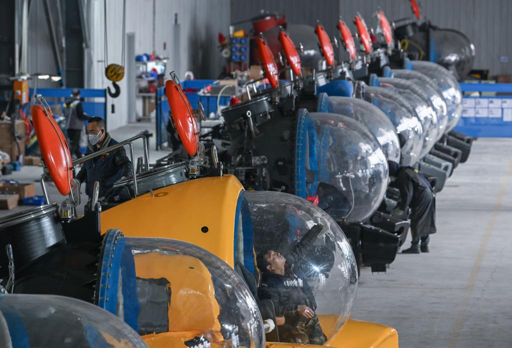 1月20日,重慶坤聯機械製造有限公司生産廠房內,工人仔細檢查潛水器的零部件。