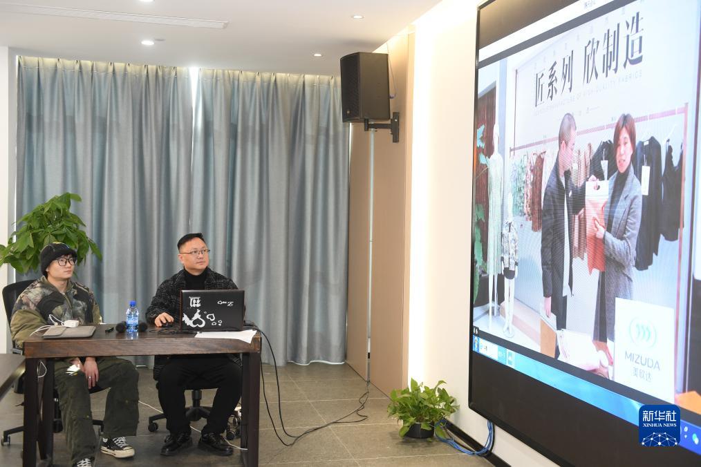 1月17日,在位於織裏鎮的萬順服飾股份有限公司,葉志強(右)和面料供貨商視頻連線,討論新一季的服裝面料。葉志強,2010年從設計專業畢業後來到織裏,2015年開始在浙江萬順服飾股份有限公司推出的自主品牌“琦瑞德澤”擔任設計部負責人。目前他帶領着近十人的設計團隊,每年為品牌貢獻2000多款童裝原創設計。從業十幾年,他親歷了織裏童裝款式從簡單模仿到設計引領的發展歷程。“消費者審美的提高和對個性化産品的需求推動着我們的進步。”葉志強説。如今在小鎮織裏,他可以在各種時裝周和博覽會上學習,加上政府助推的“童裝出海”潮流,日益增強的國際交流令他對未來充滿信心。