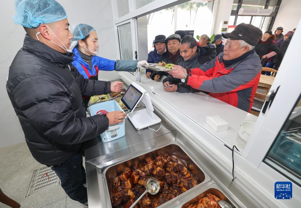 1月23日,老人在嘉興秀洲區新塍鎮虹橋社區長者食堂購餐。