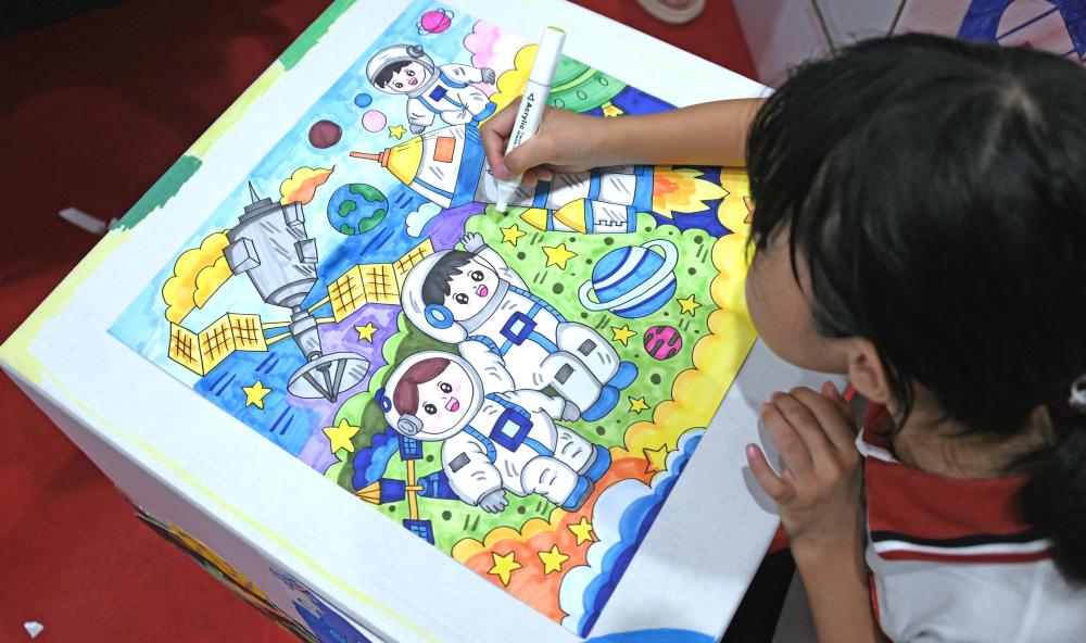 9月25日,浙江省台州市華東師範大學附屬仙居學校學生在“畫出心中最美的祖國”迎國慶主題繪畫活動中畫畫。