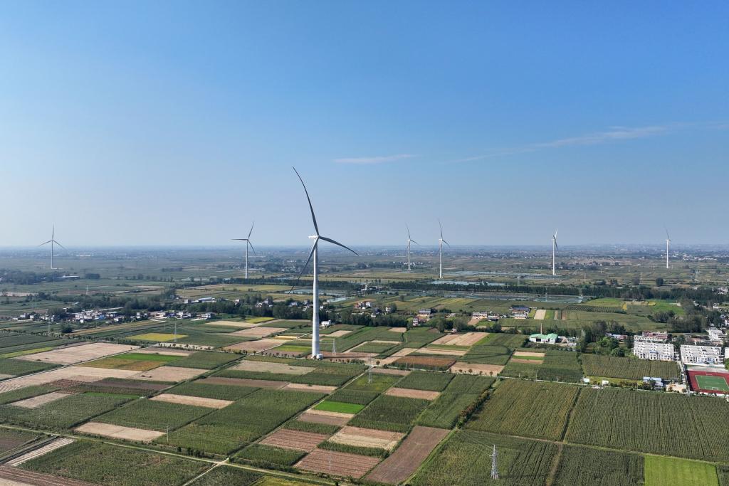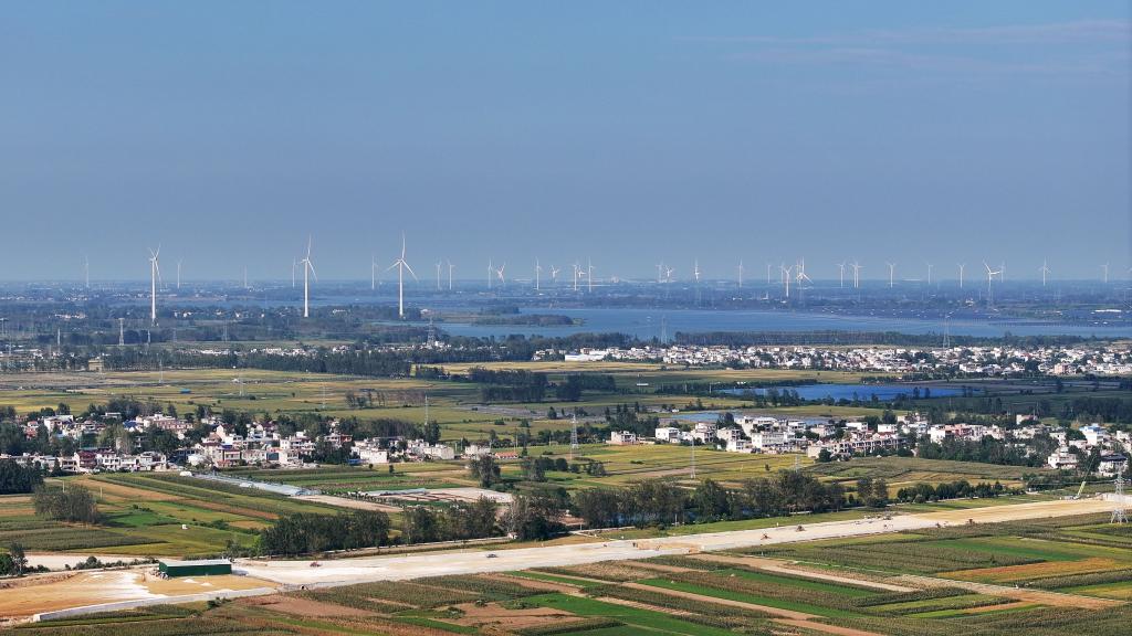 這是9月27日在蚌埠市五河縣拍攝的風力發電設施(無人機照片)。