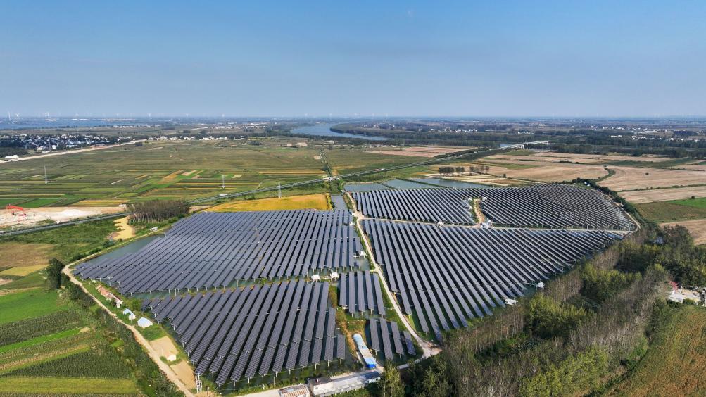 這是9月27日在蚌埠市五河縣拍攝的光伏發電設施(無人機照片)。