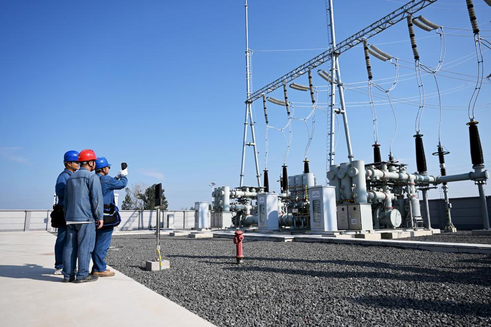 9月27日,在林洋安徽五河風光儲一體化基地儲能電站,國網五河縣供電公司的工作人員對設備進行巡檢。