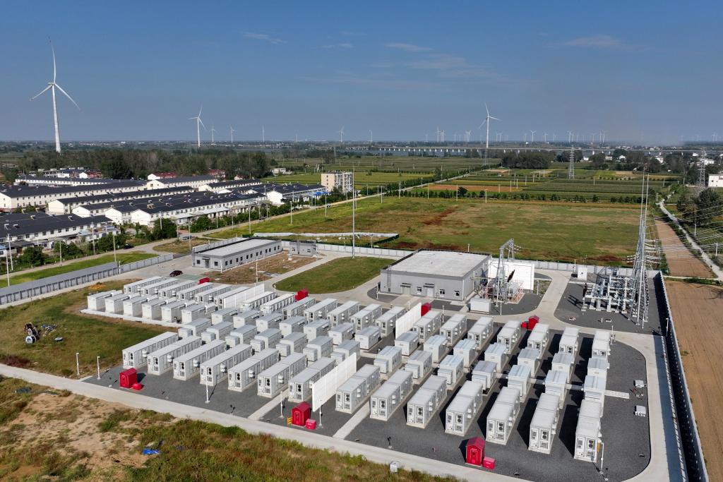 這是9月27日拍攝的林洋安徽五河風光儲一體化基地的儲能設施。(無人機照片)。