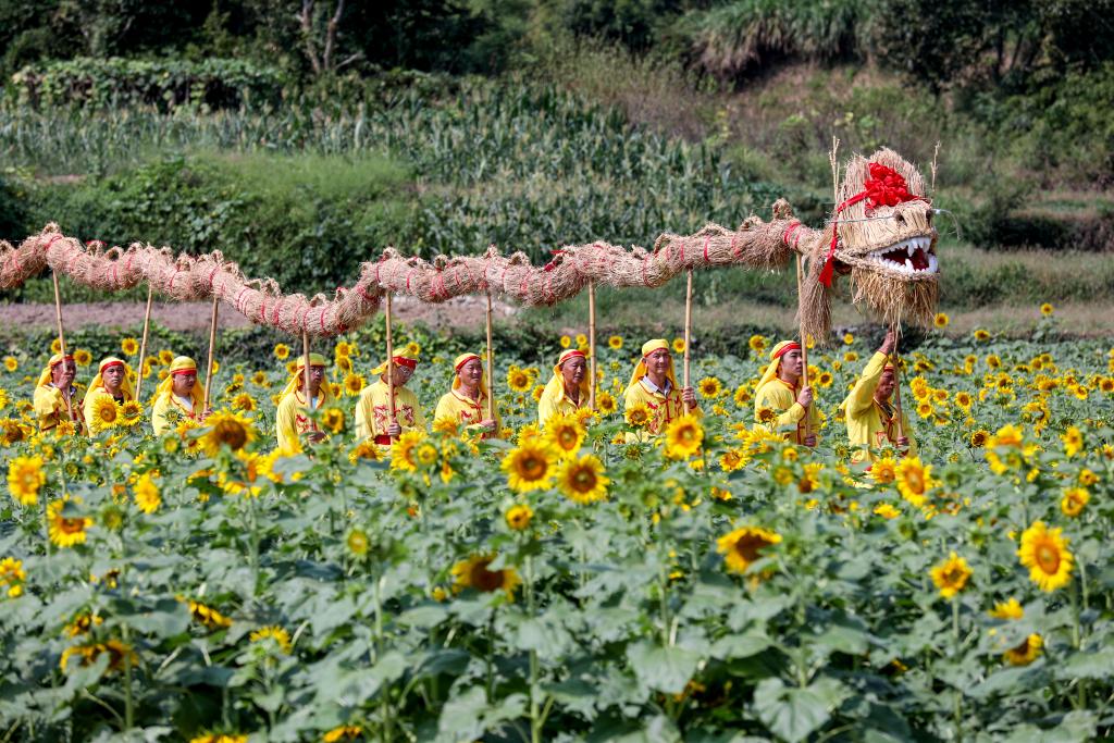 10月4日拍攝的蜀源村“舞草龍”活動。 新華社發(樊成柱 攝)