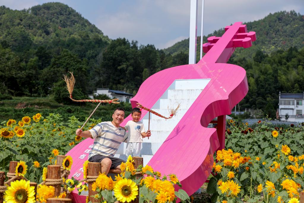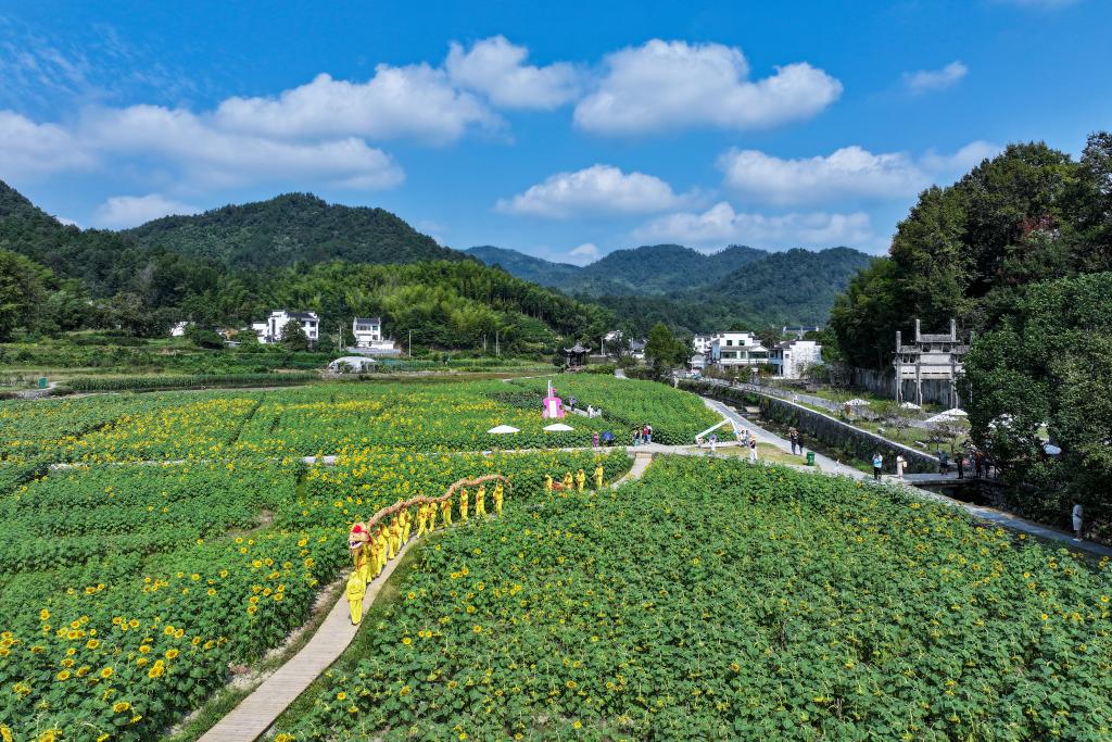10月4日,游客在蜀源村舞動小草龍。新華社發(樊成柱 攝)