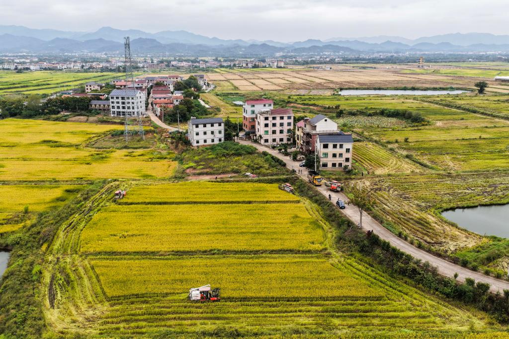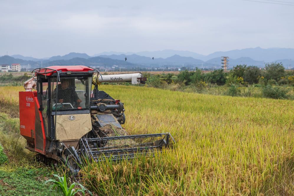 金秋時節,浙江省金華市金東區塘雅鎮萬畝良田示範區的水稻迎來集中收割期,收割機在稻田來回穿梭,搶抓農時收割水稻。塘雅鎮作為金東區最早開展“多田套合”試點的片區,累計建成永久基本農田1萬多畝,從育種到收割全程實現機械化、智能化。
