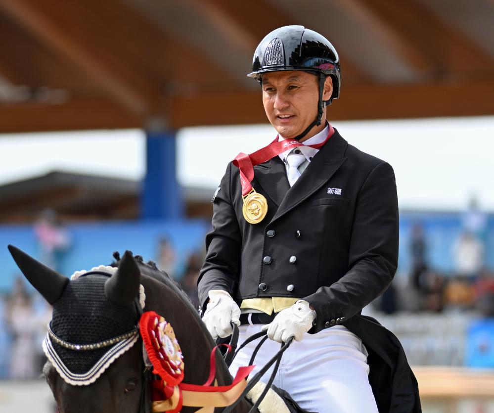 ——全運會馬術比賽頒獎儀式結束後,獲獎騎手會騎馬繞場一週,接受觀眾祝賀。此時,不僅騎手胸前閃耀着獎牌,馬的左耳旁也別着一朵精緻的“馬花”,上面清晰地標注着比賽項目與名次。