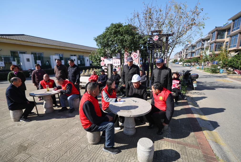 11月19日,呂山鄉龍溪村的村民議事協商小組在村裏的議事協商公園裏就村務發展徵集意見。