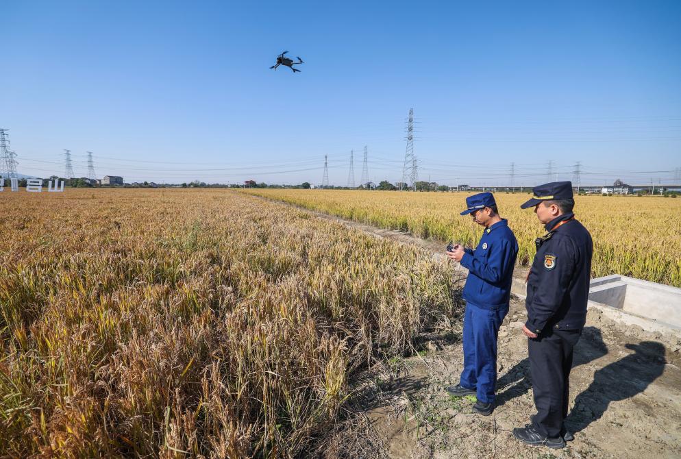 11月19日,呂山鄉綜合執法中隊聯合應急消防管理站工作人員用無人機,對糧食收割及運輸期間的安全問題、道路整潔情況及秸稈焚燒等進行巡查。