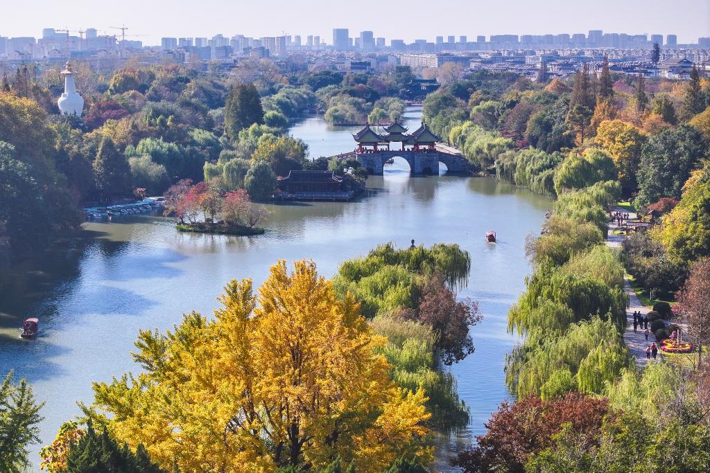 11月19日拍攝的江蘇揚州瘦西湖風景區(無人機照片)。