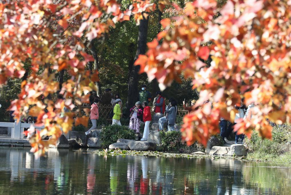 11月19日,游客在江蘇蘇州天平山景區賞楓游玩。