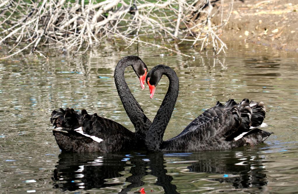 近日,多地黑天鵝結伴出行,在水中游弋、嬉戲、覓食,享受初冬時光。