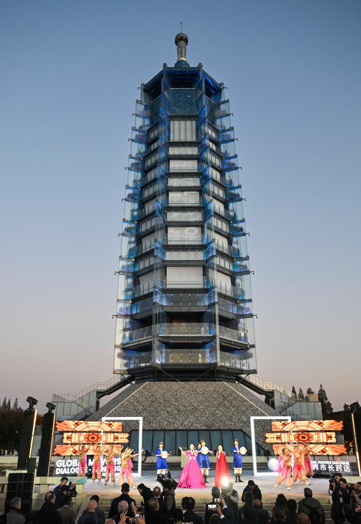 11月19日,演員在“世界市長對話·南京”活動開幕式上表演。