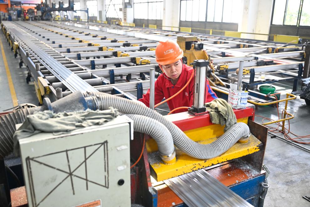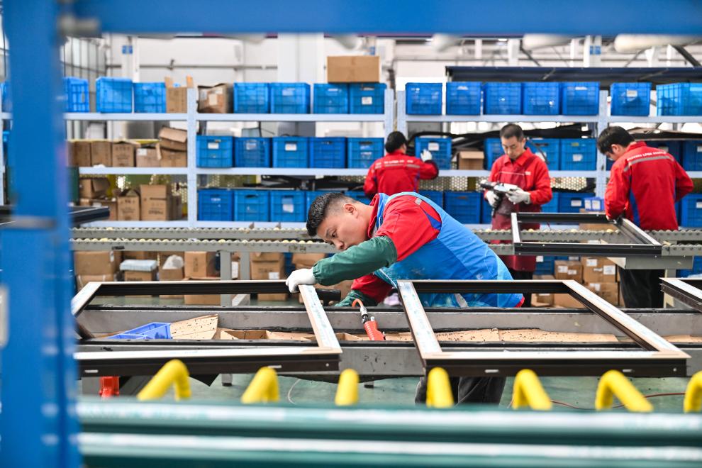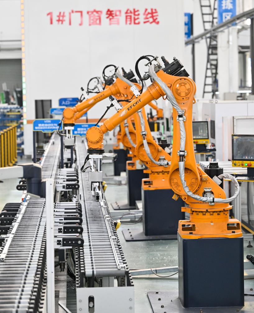 11月25日拍攝的中億豐羅普斯金材料科技股份有限公司門窗智能生産線。
