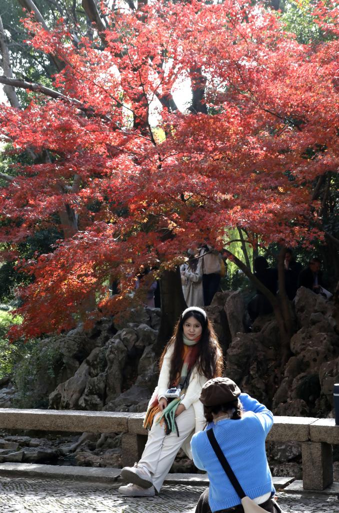 11月28日,游客在江蘇蘇州拙政園賞景拍照。