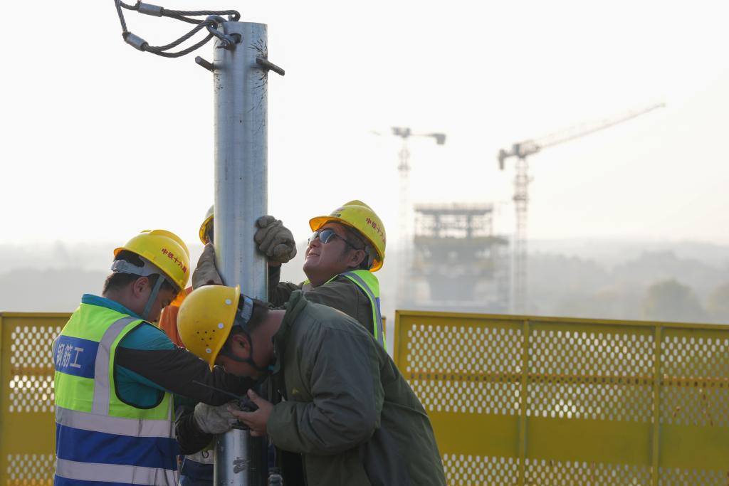 12月19日起,位於浙江省嘉興市南湖區的新建南通至寧波高速鐵路(簡稱通甬高鐵)嘉興特大橋跨杭申線航道矮塔斜拉橋連續梁0號塊持續進行澆築施工,將為後續橋樑上部結構推進奠定基礎。